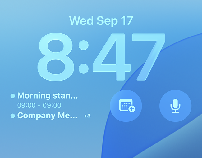 FirstSeed Calendar always embraces the latest features of iOS. With iOS 26, it was quick to adopt Liquid Glass, Lock Screen widgets, weather integration, and Focus filters. On iPhone, you can now place widgets directly on the Lock Screen, making it easier than ever to check your schedule. You can also add a quick-create event button to the Lock Screen, so creating new events takes just a tap.