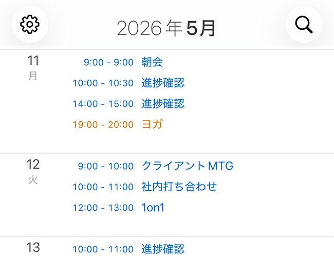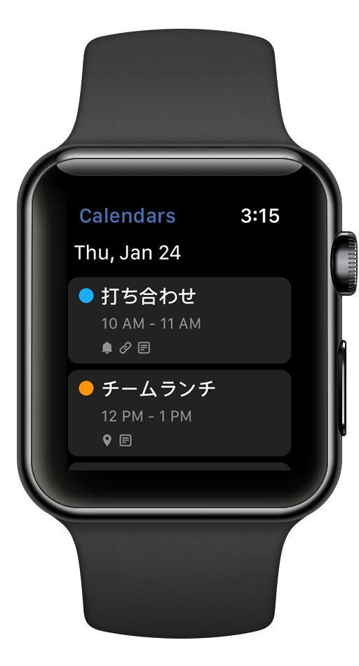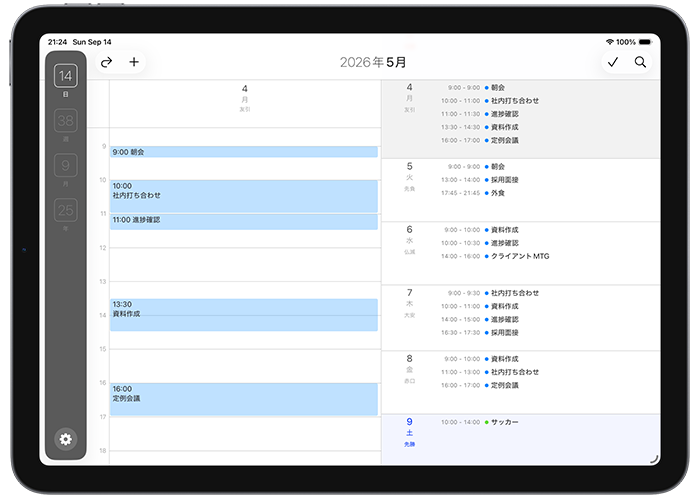 他にもタイムゾーンや予定の履歴、週3日表示など様々な機能を搭載しています。